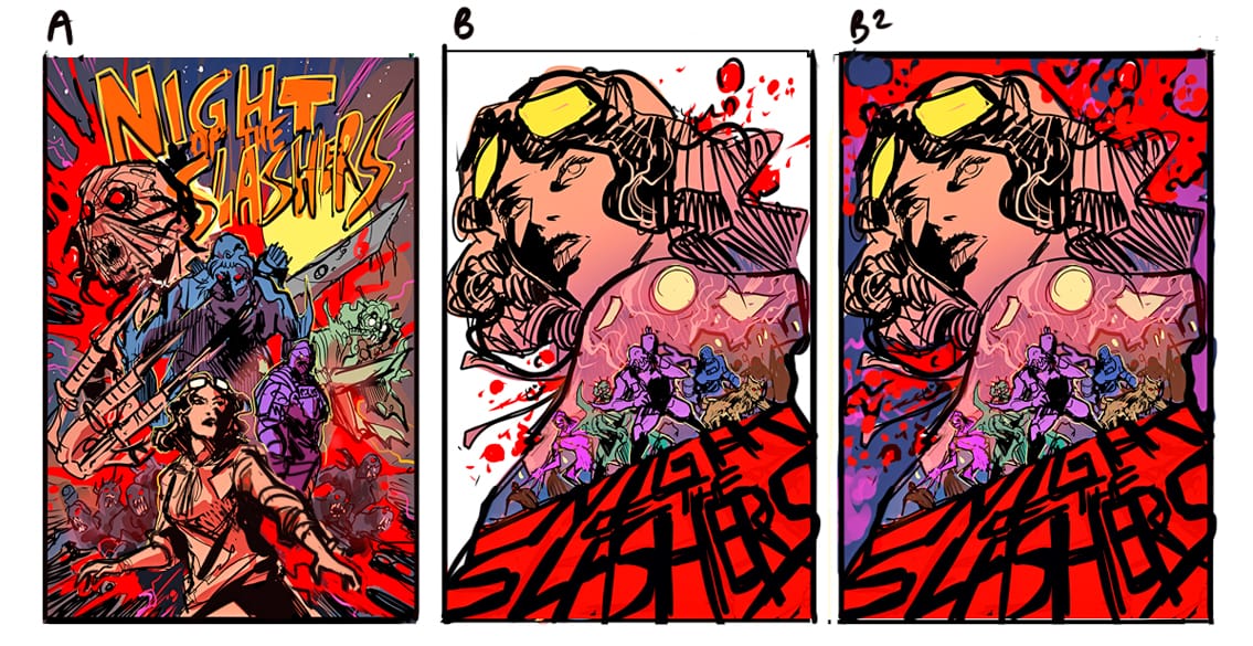 Here, for my loyal subscribers, is the exclusive reveal of the Night of the Slashers cover that might have been: