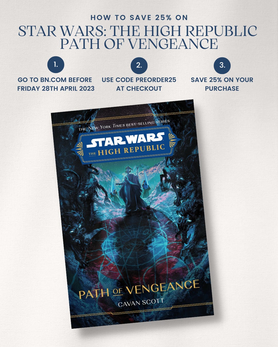 U.S. friends, there is still a chance to pre-order Star Wars: The High Republic - Path of Vengeance from BN.com and get 25% off! You just need to order it before Friday 28th April using the code PREORDER25 ! Hurry!