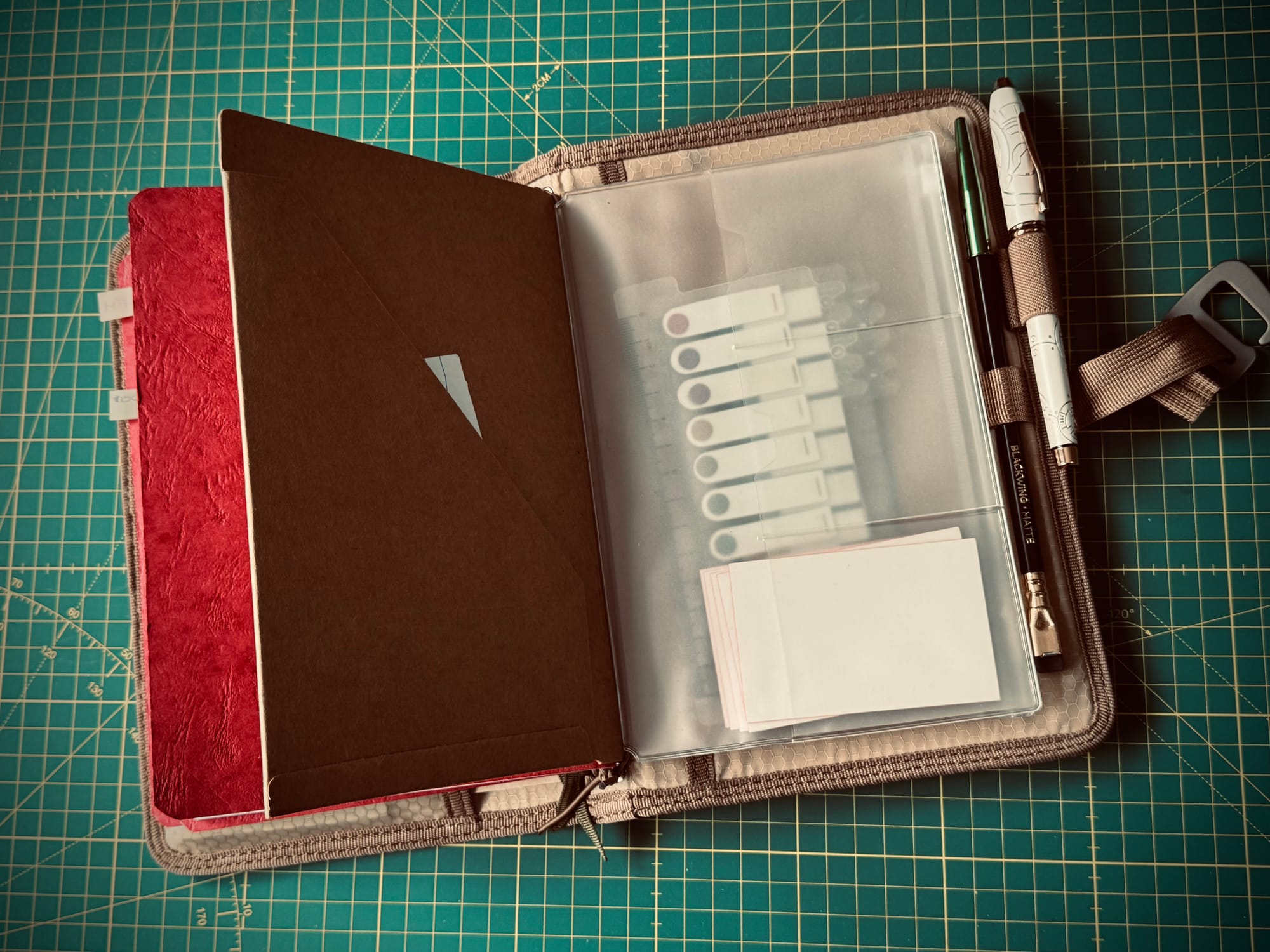As an alternative, I've added a Wanderings Zipper Case and Kraft Sleeve combo to the last elastic band to spread out the stationery supplies while also freeing up the second pen loop, which is blocked when housing four notebooks.