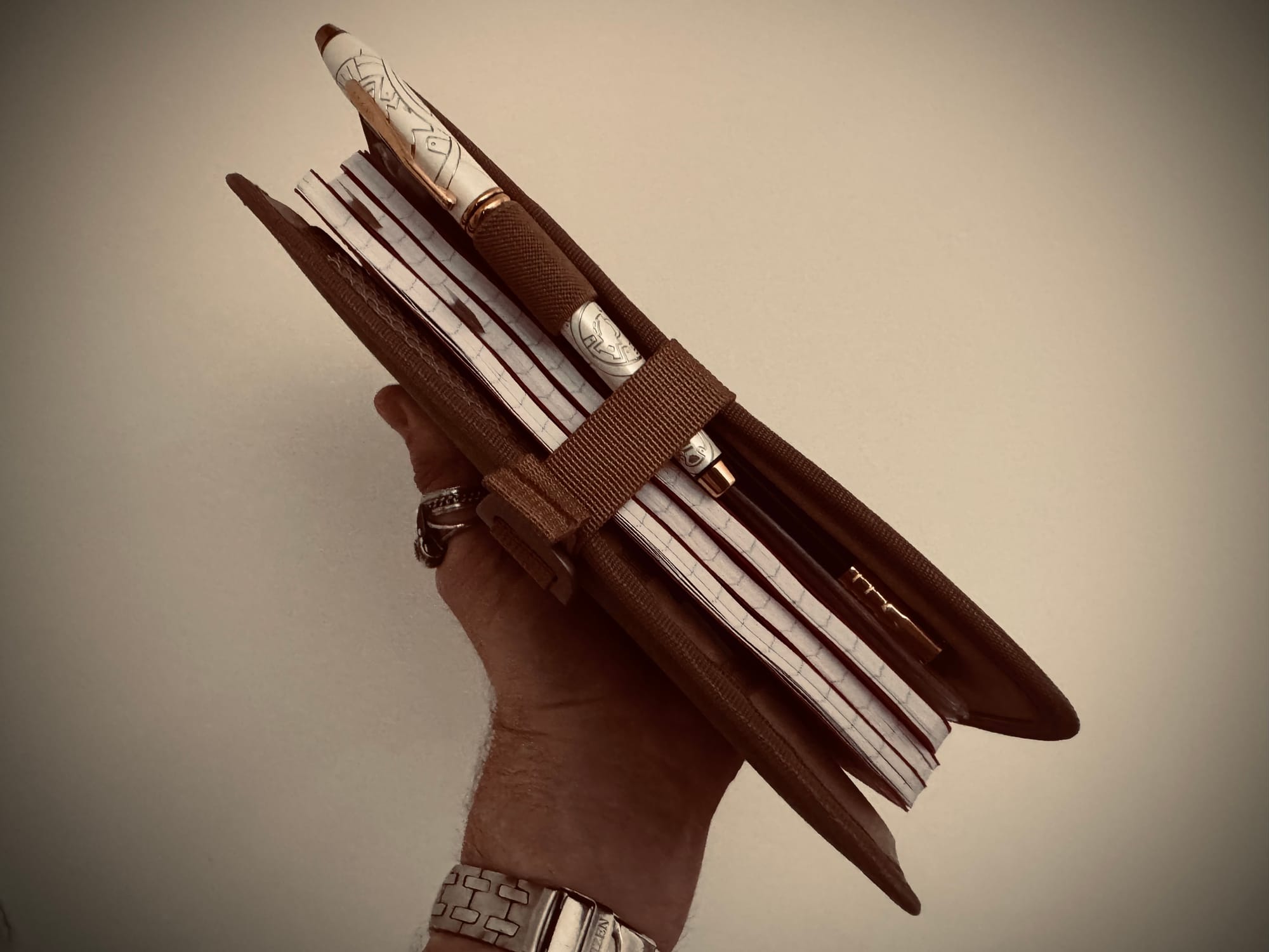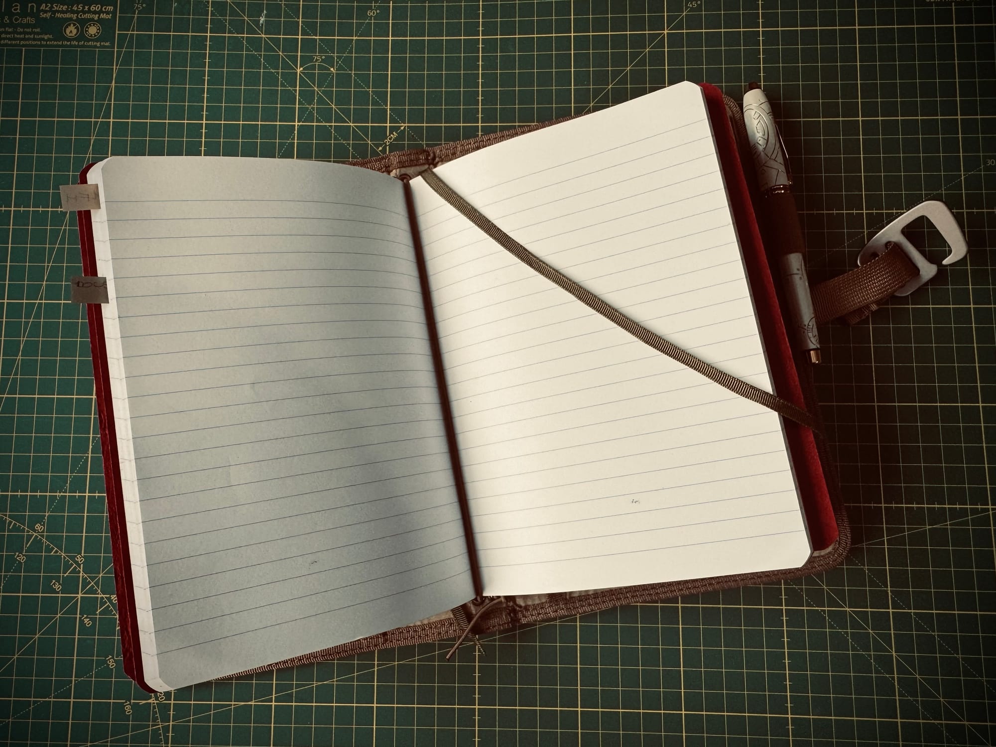 The Fontaine's 90 gsm paper is perfect for fountain pen ink, but the extra bulk means that I can only comfortably fit three books into the Lochby using the straps.