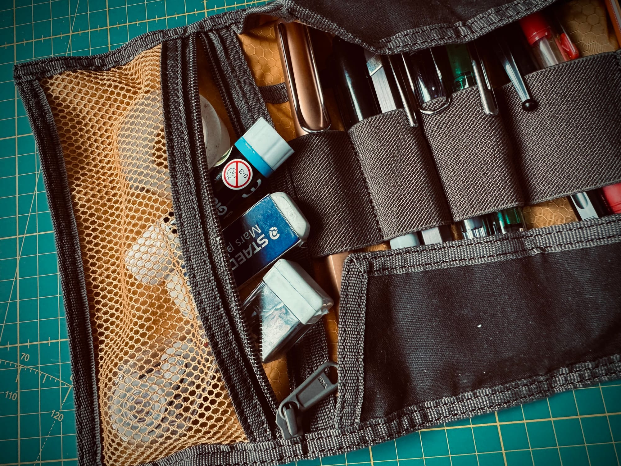 You're left with a nicely-packed stationery burrito that, while it doesn't have any extra padding, is tough enough to protect your tools if chucked into a backpack.