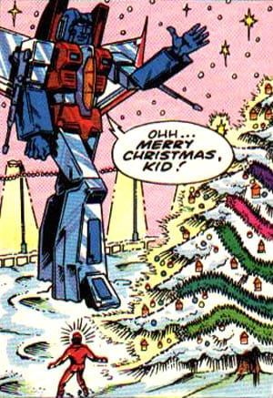 In the original story written by Ian Ritter, a kid tries to teach Starscream the true meaning of December 24th, the cantankerous Cybertronian eventually wishing the festive-filled fleshing a merry Christmas.
