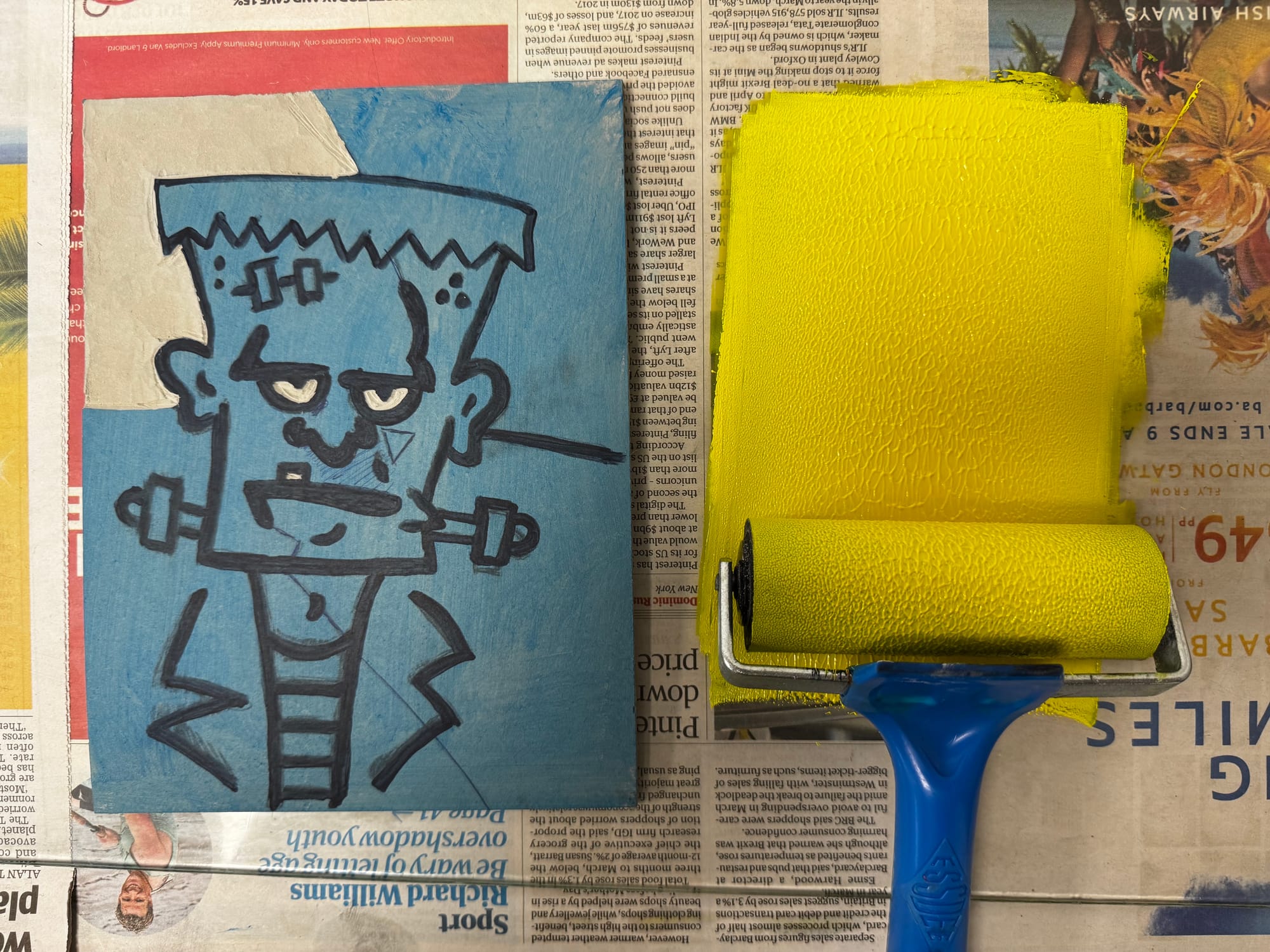 I don't know what was wrong with me. I started by making up faaaar too much green... and then proceeded to drown the roller in the stuff.
