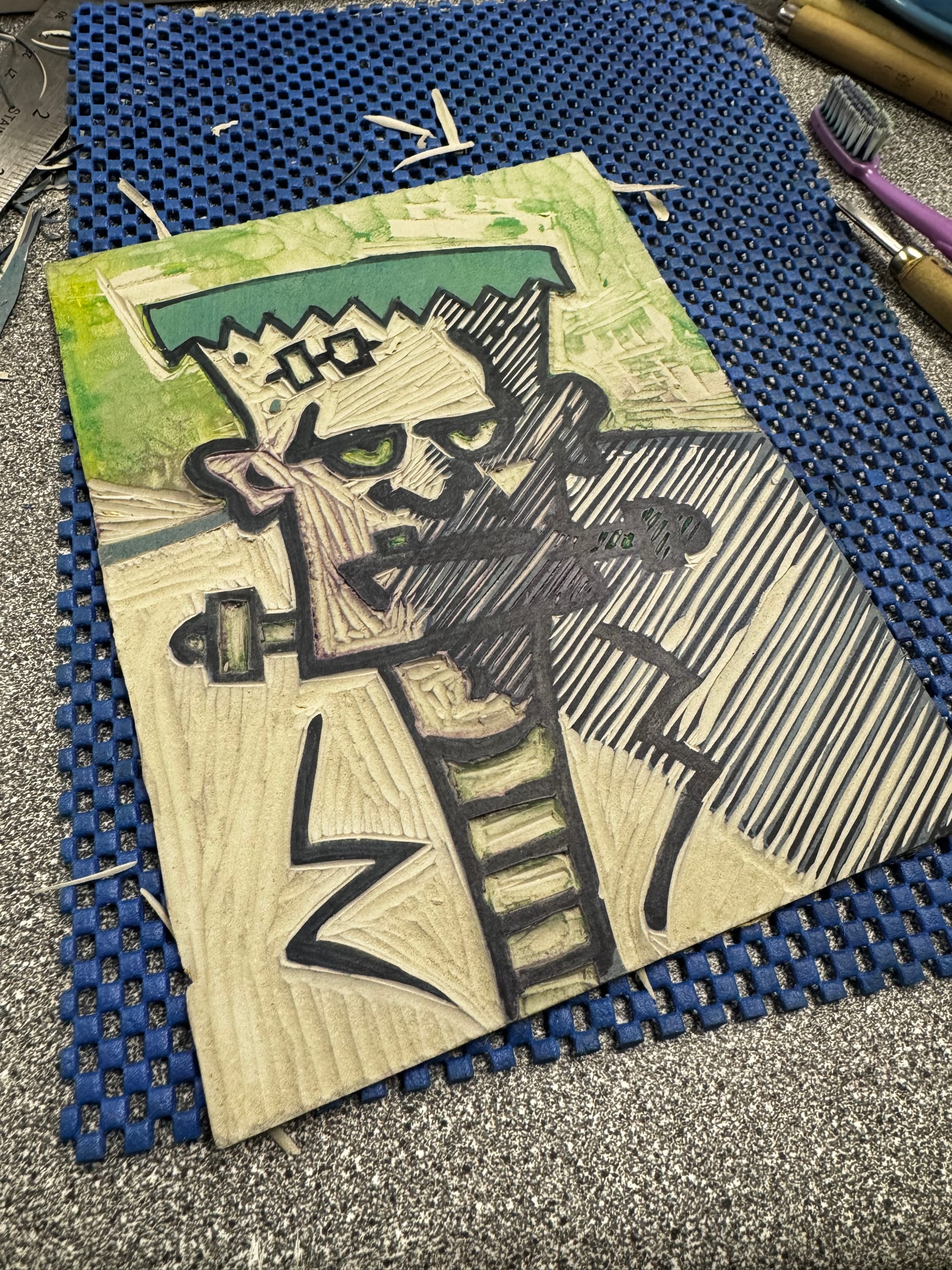 All that was left was to carve the last layer and ink him up!