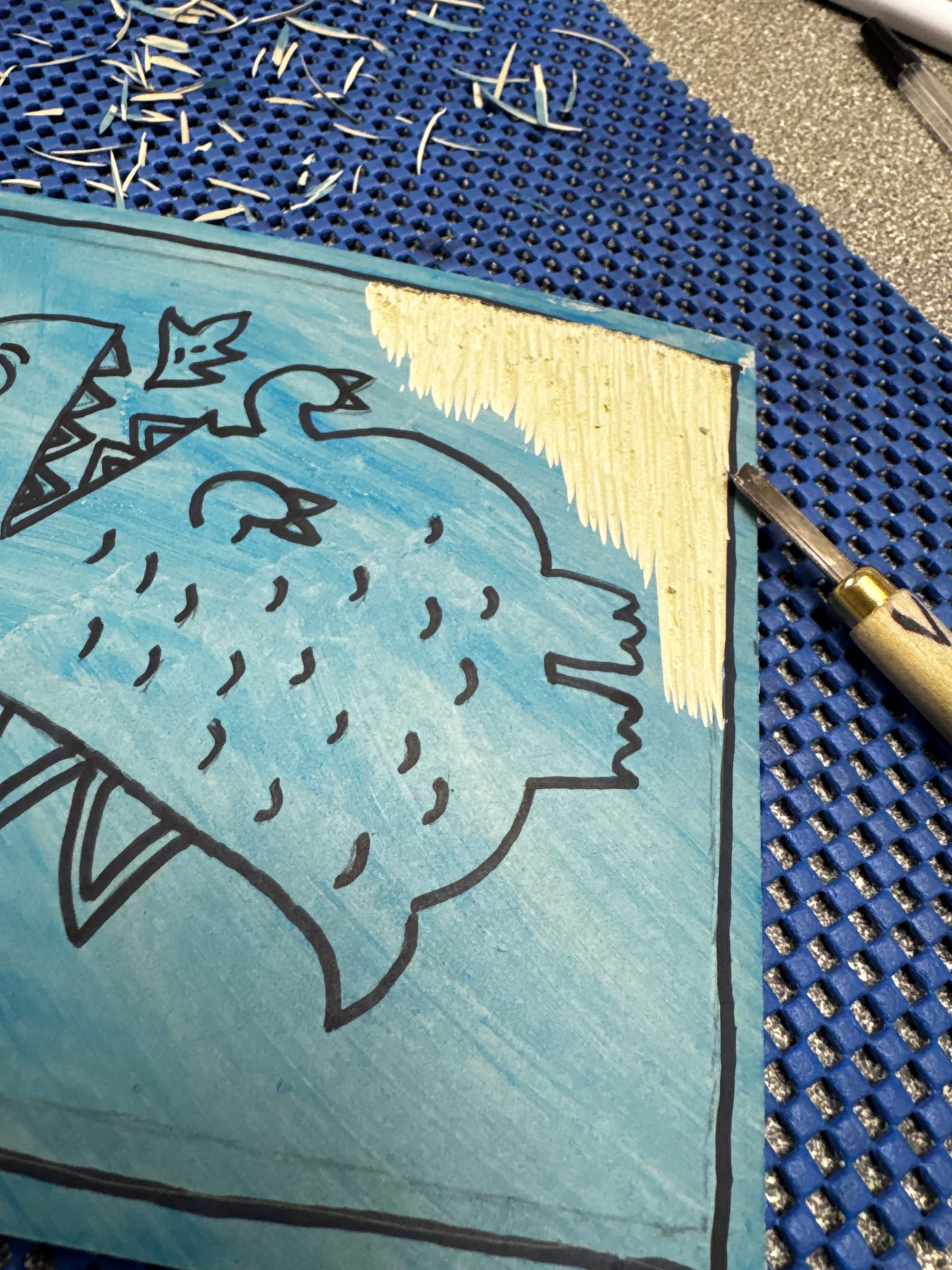 I'm just heading out for this week's class where I'll finish the cut and, hopefully, get ready to make my first print!