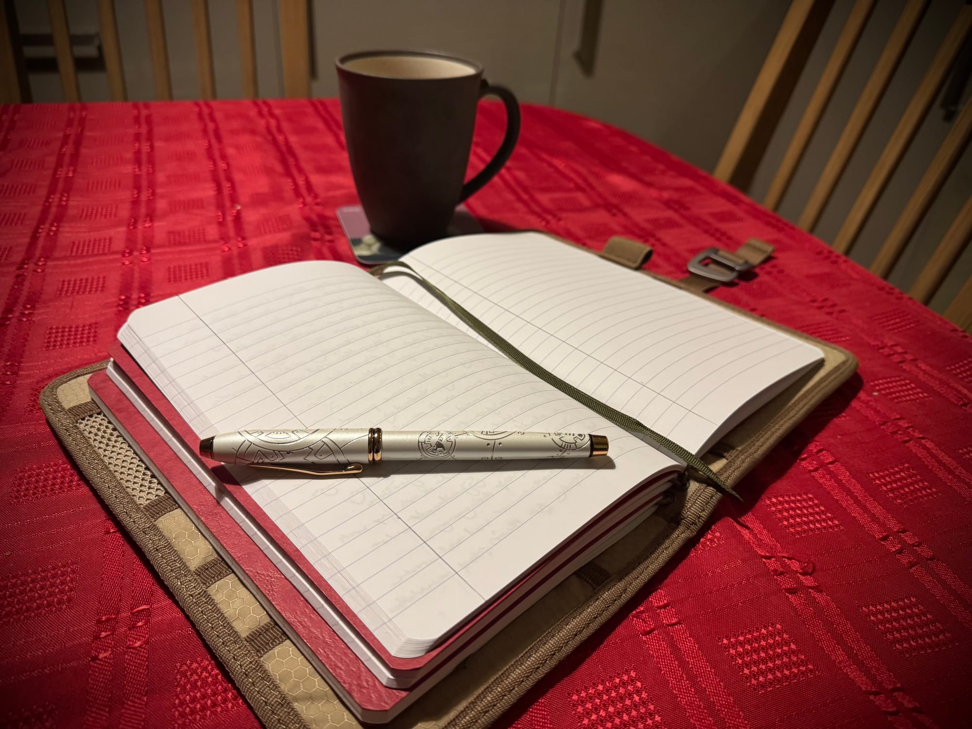 6.20am - With my wife’s tea safely delivered to her side, I’m back at the kitchen table with my journal open and my pen ready.
