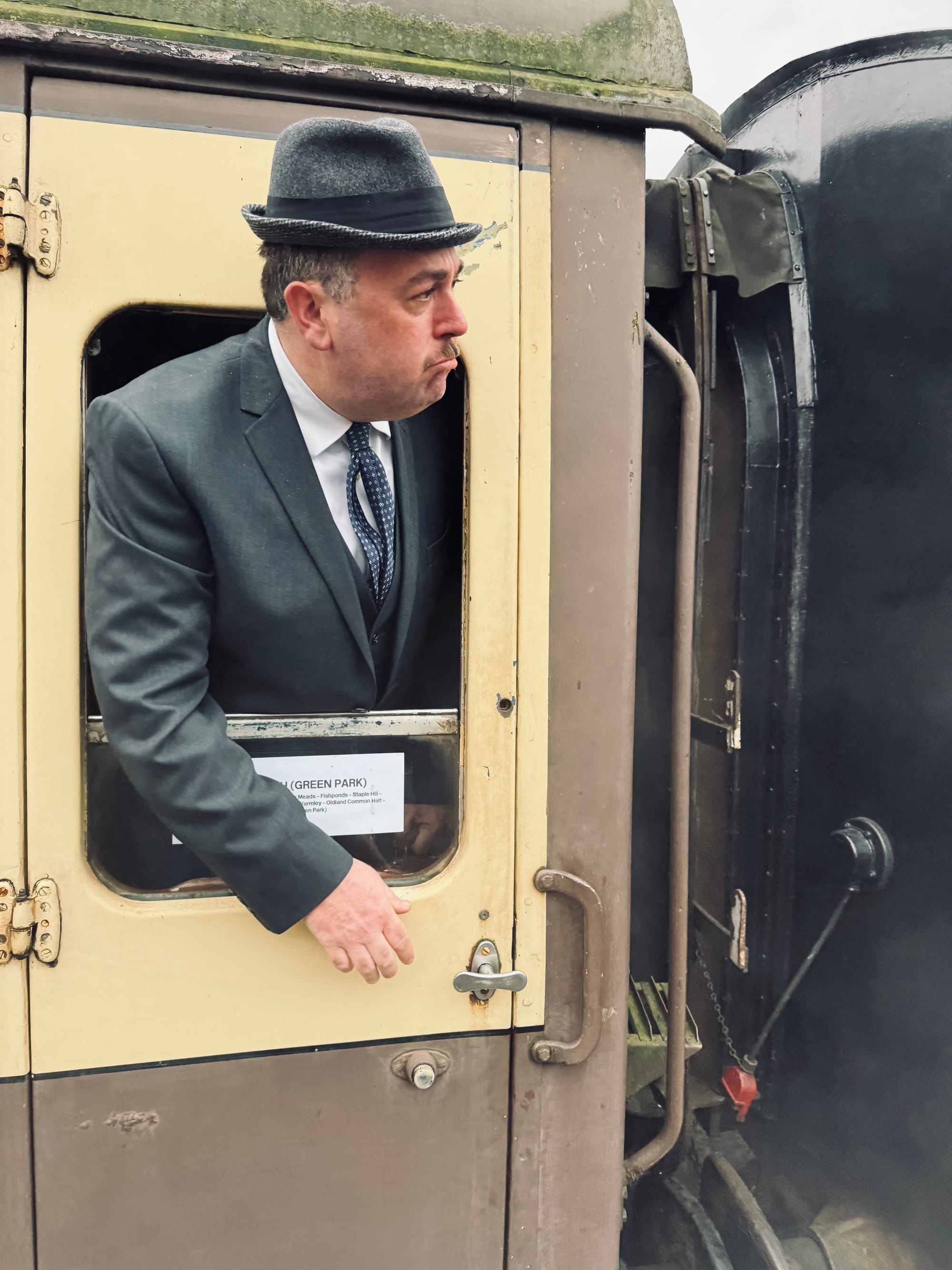 Vintage cars and vehicles were also lined up at the station entrance, including this stunning Bristol Royal Blue Coach, snapped up by owner Richard Avery ten-years ago for a cool £15,000 and lovingly restored.