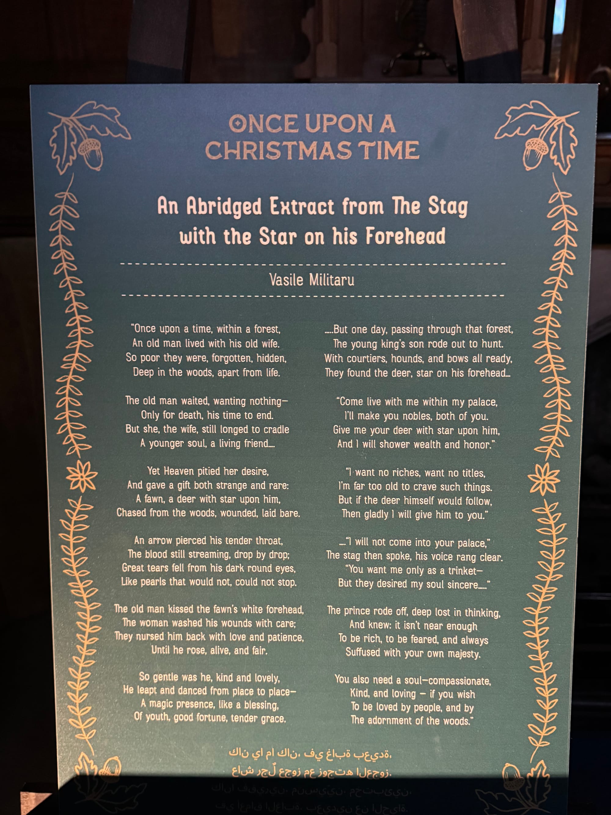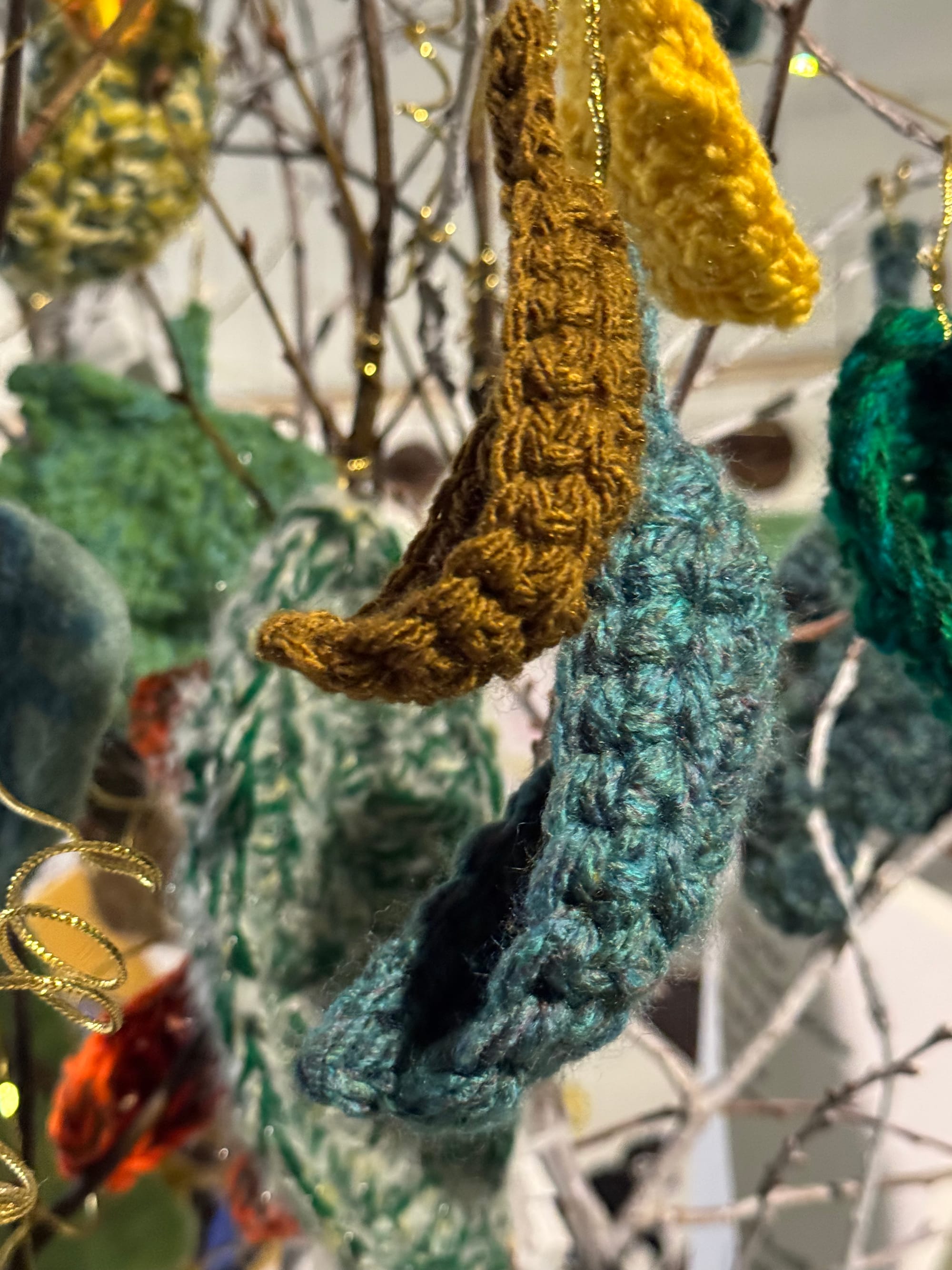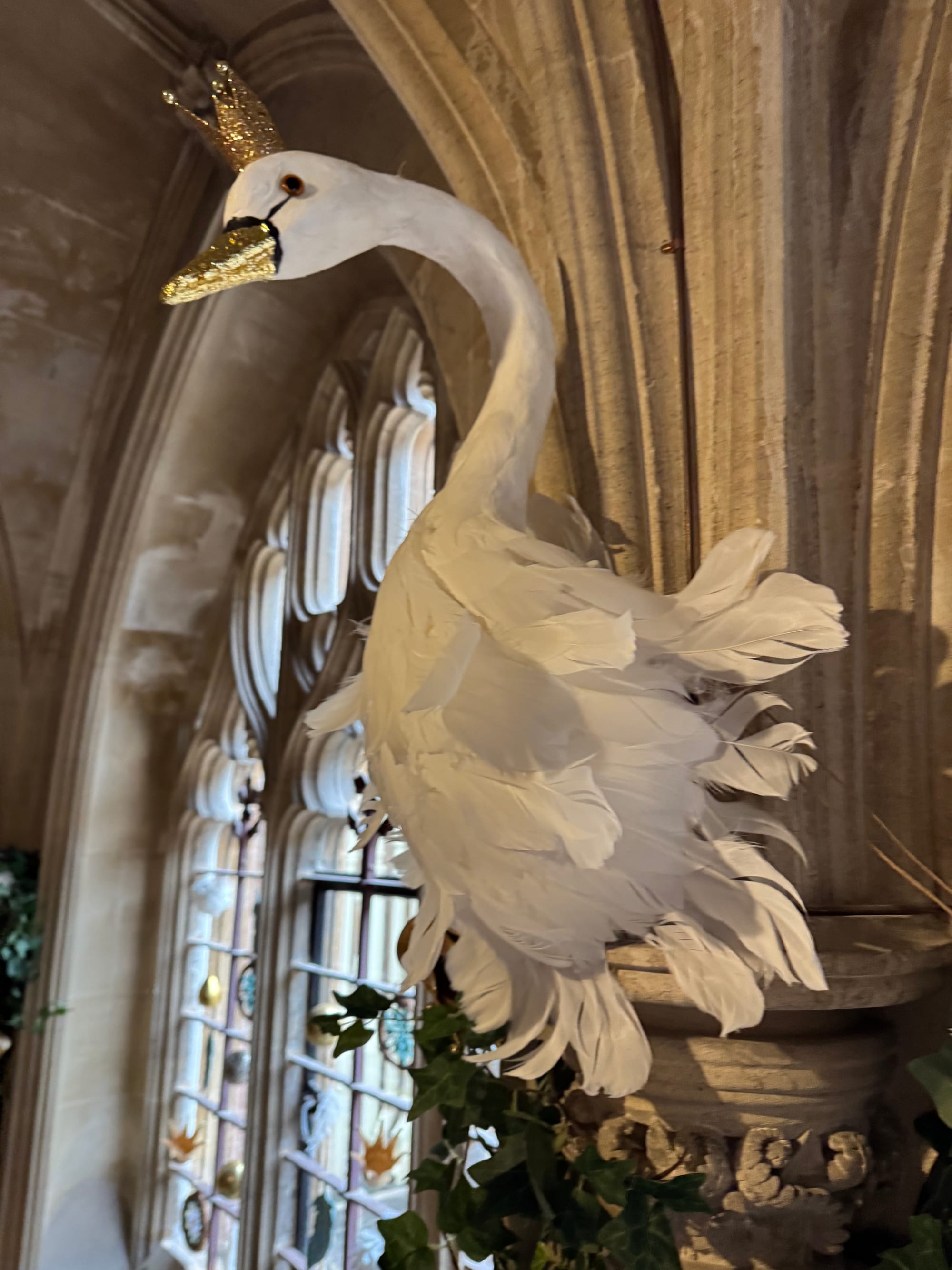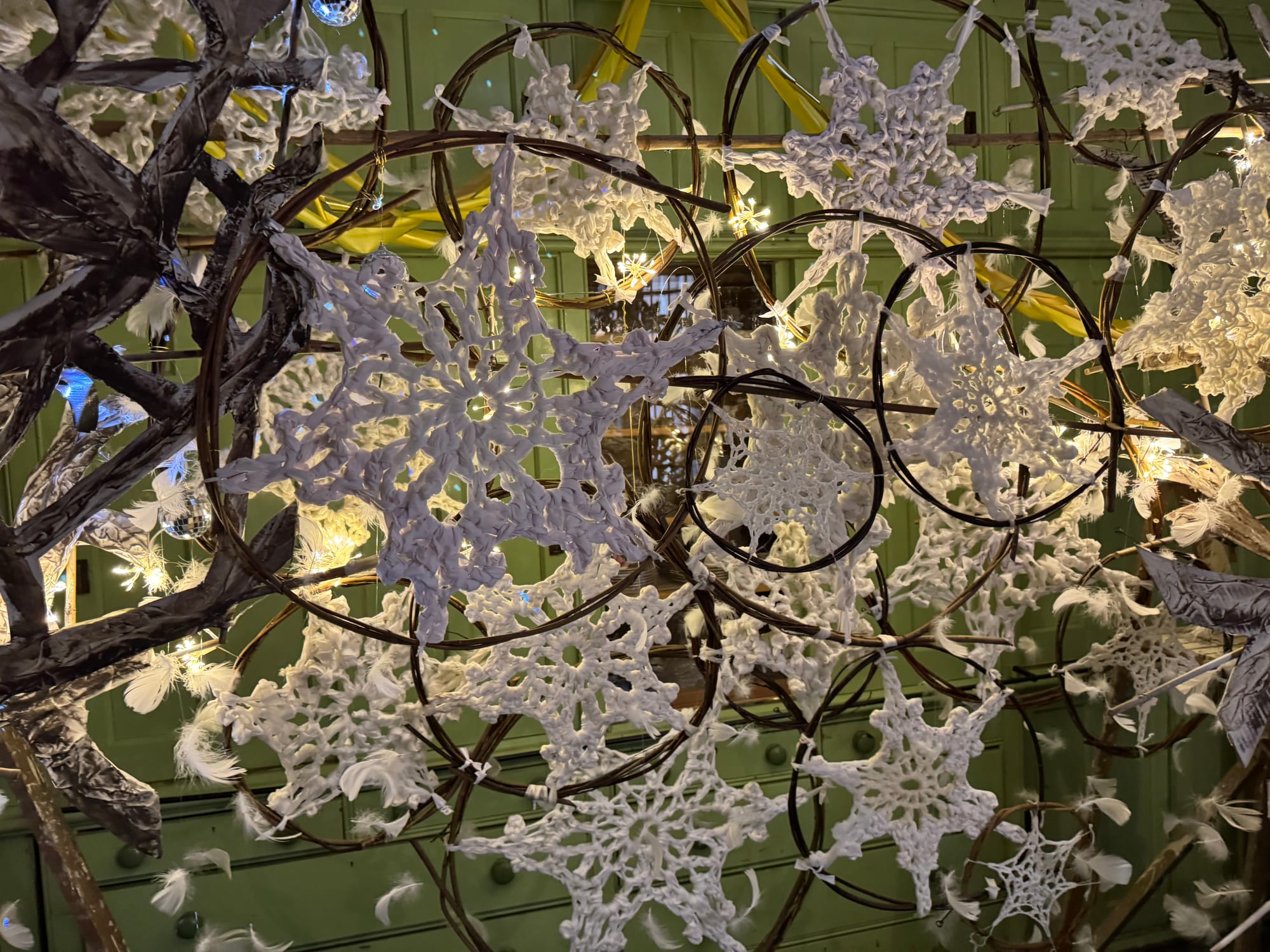 Greeting visitors to the grand entrance is Hans Christian Andersen’s The Wild Swans, complete with crocheted and decoupaged baubles by volunteers from a local social housing project.