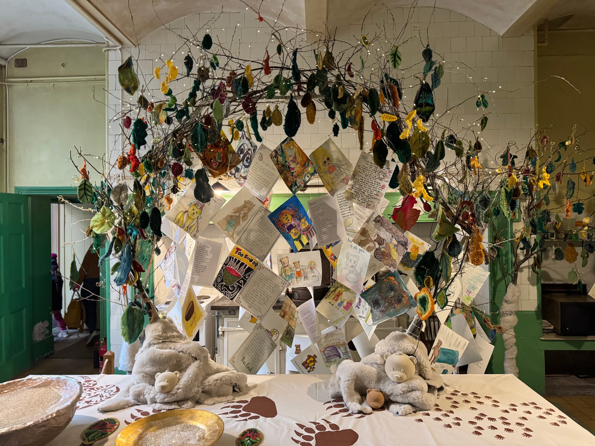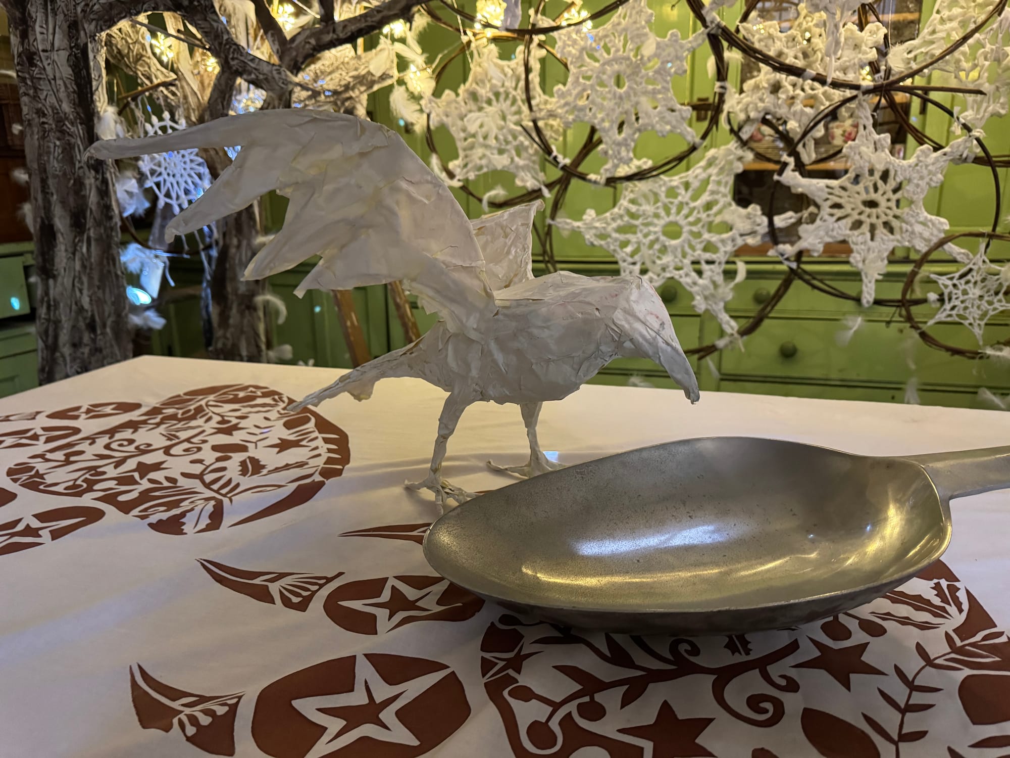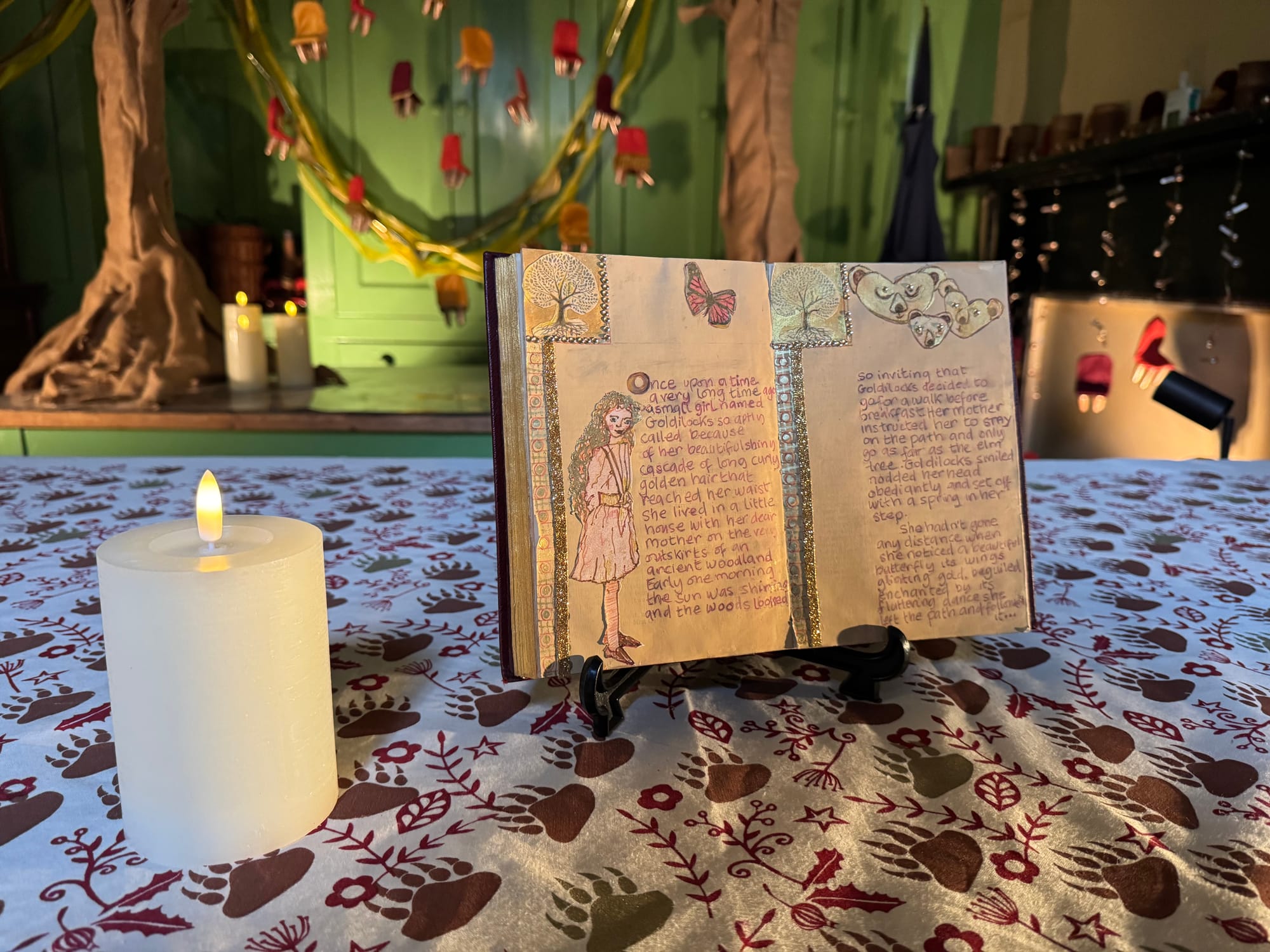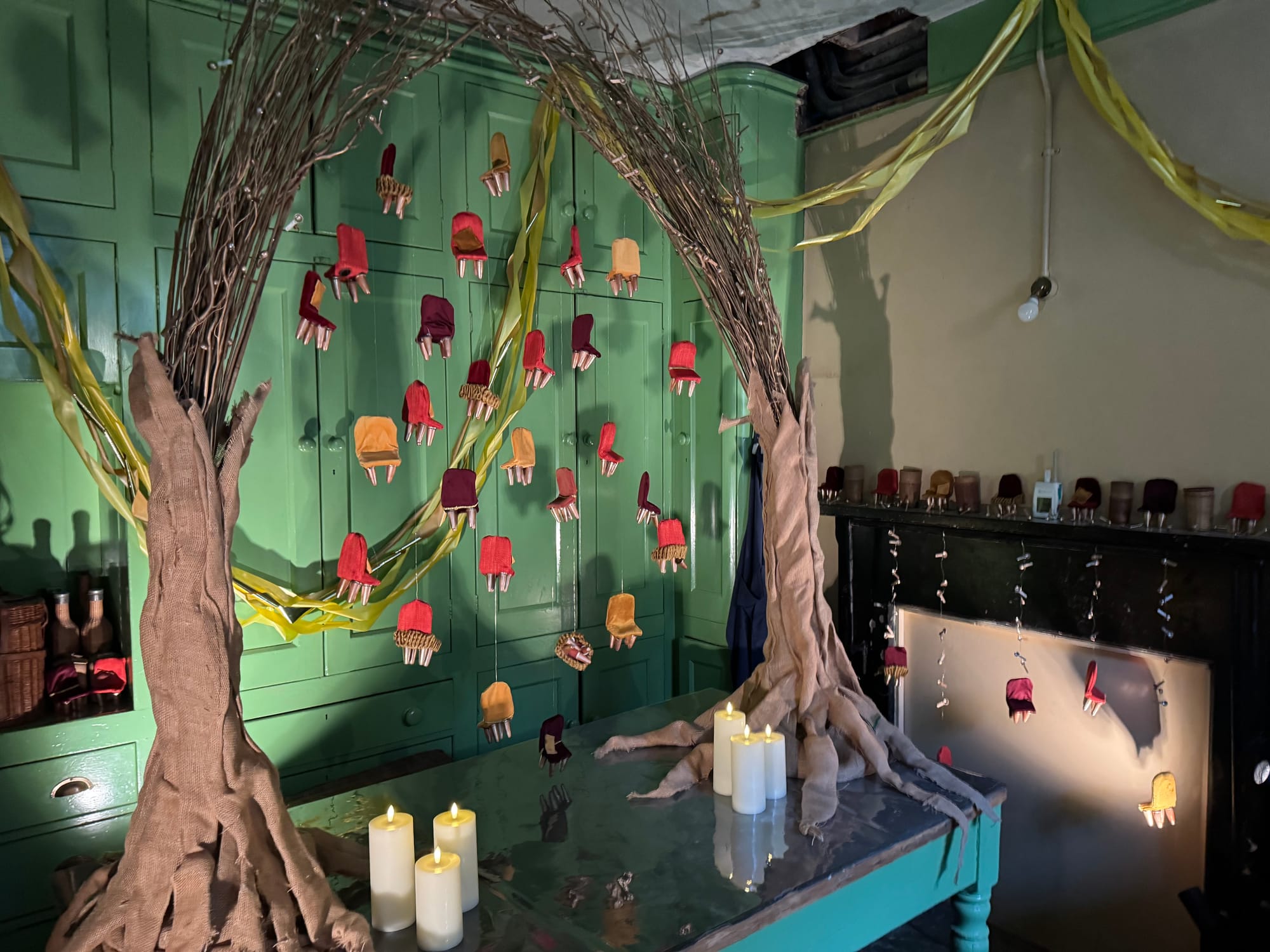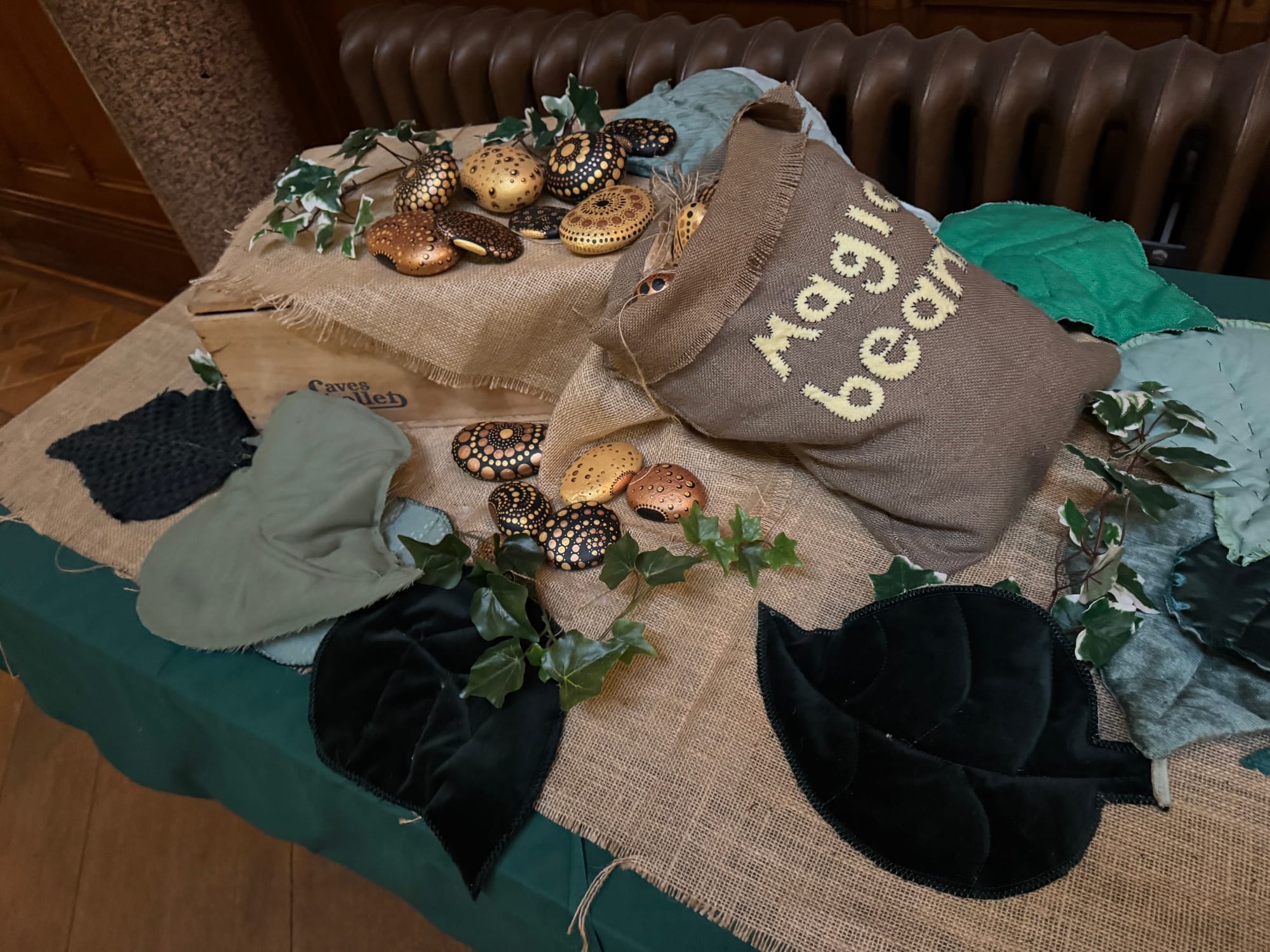 The Billiard Room features a Romanian folktale that was new to me – The Stag with a Star on His Forehead – with the craft on the surrounding tables created by Next Gen, a creative group for young male refugees in North Somerset.