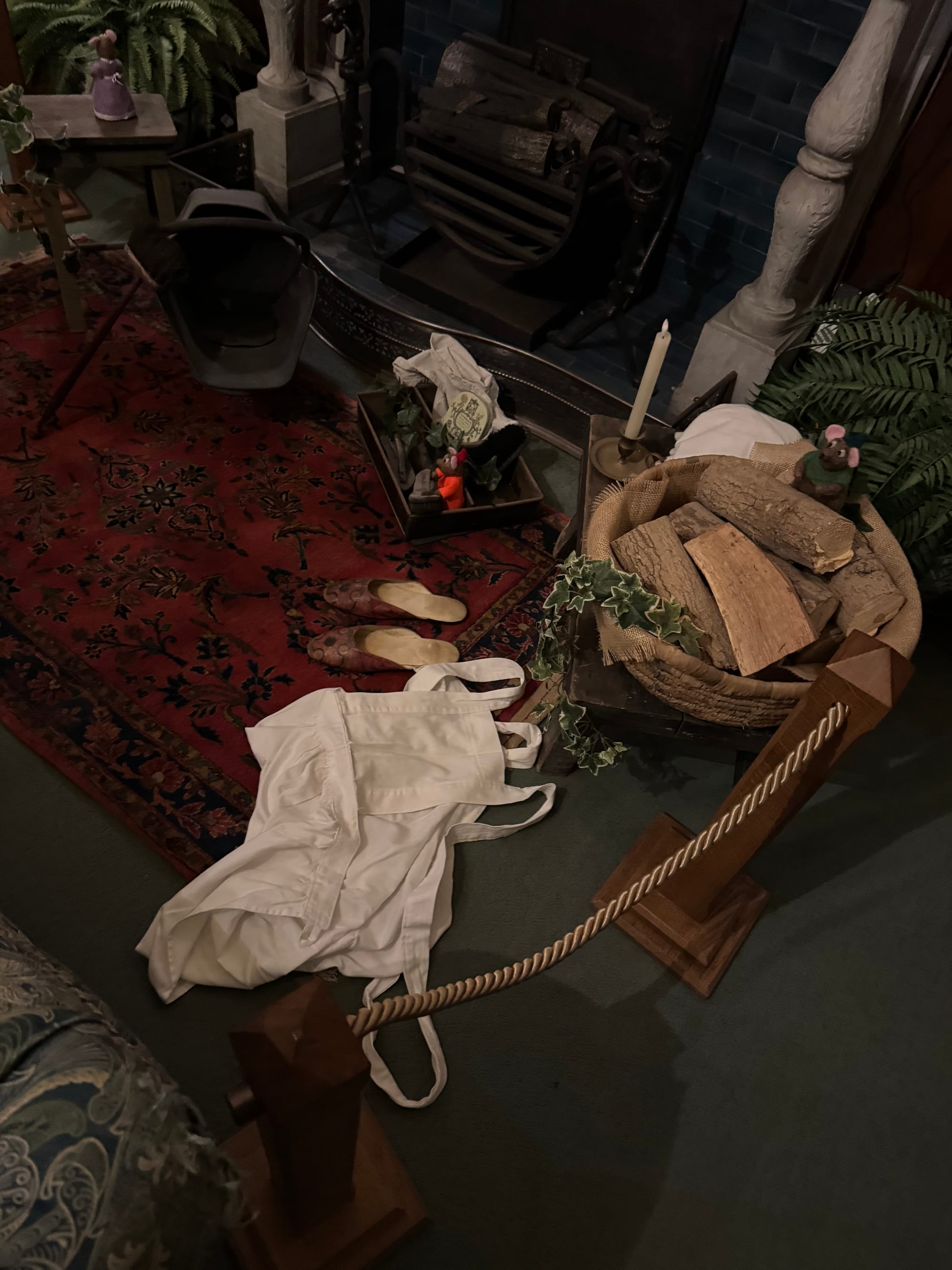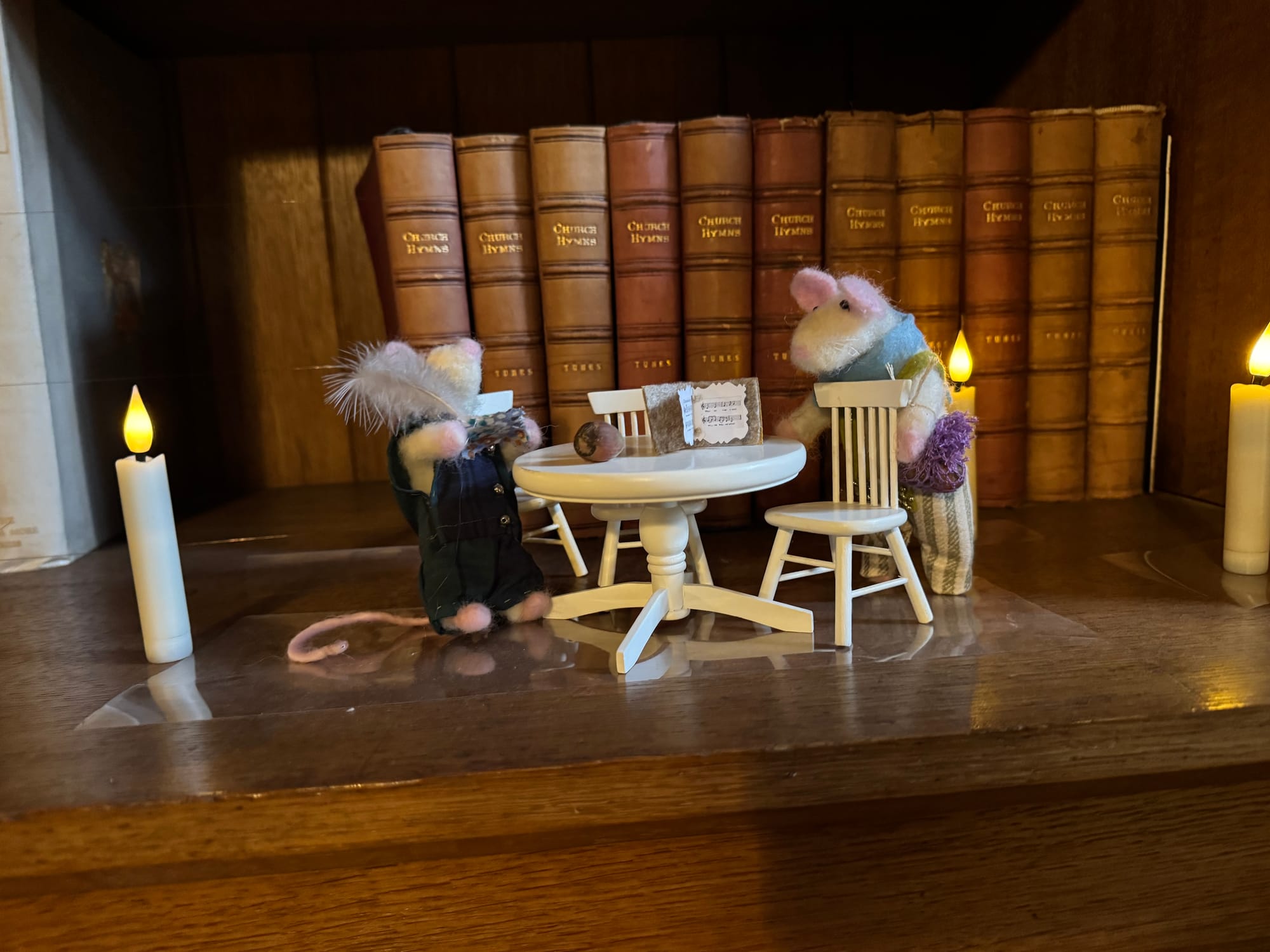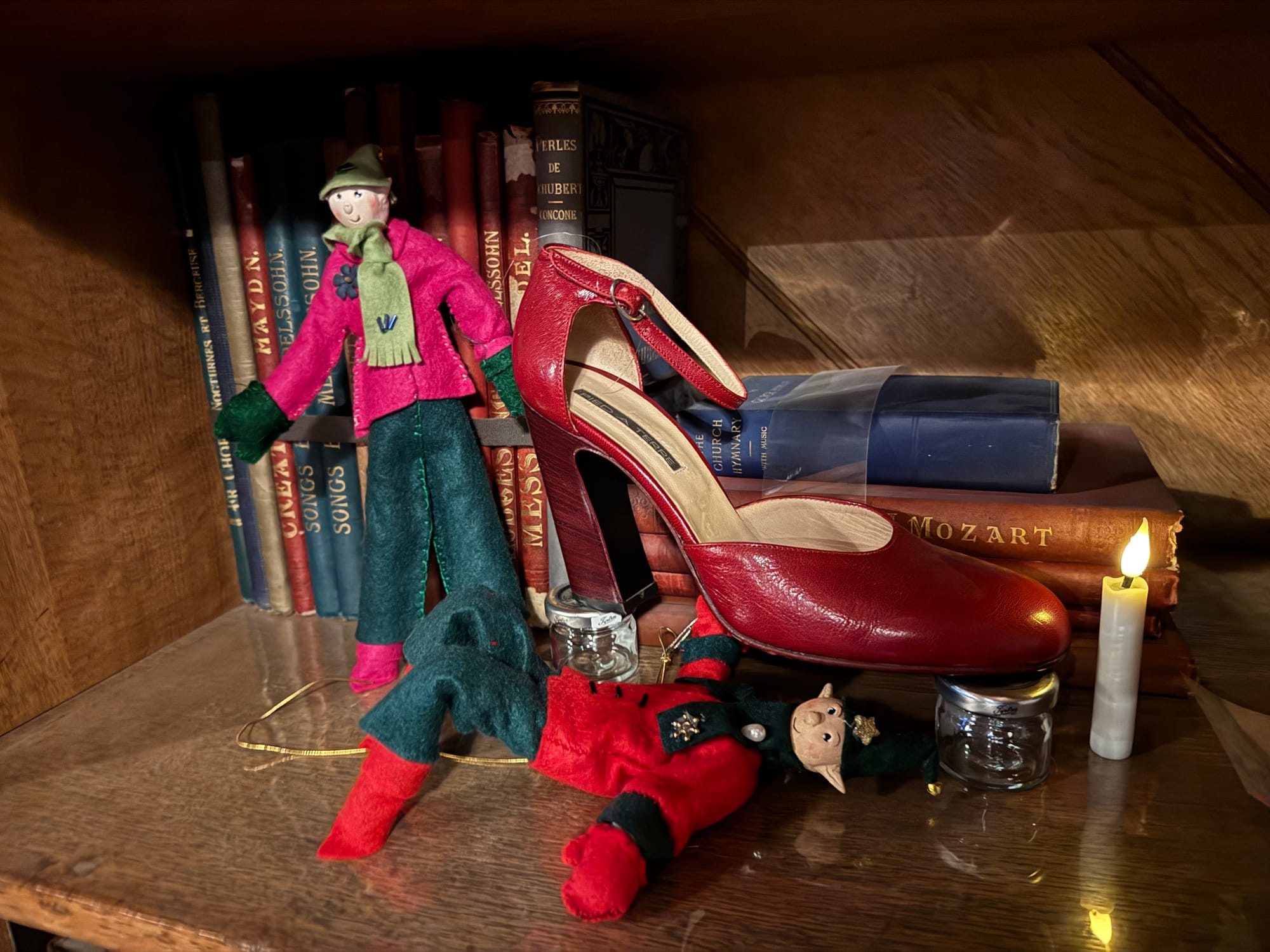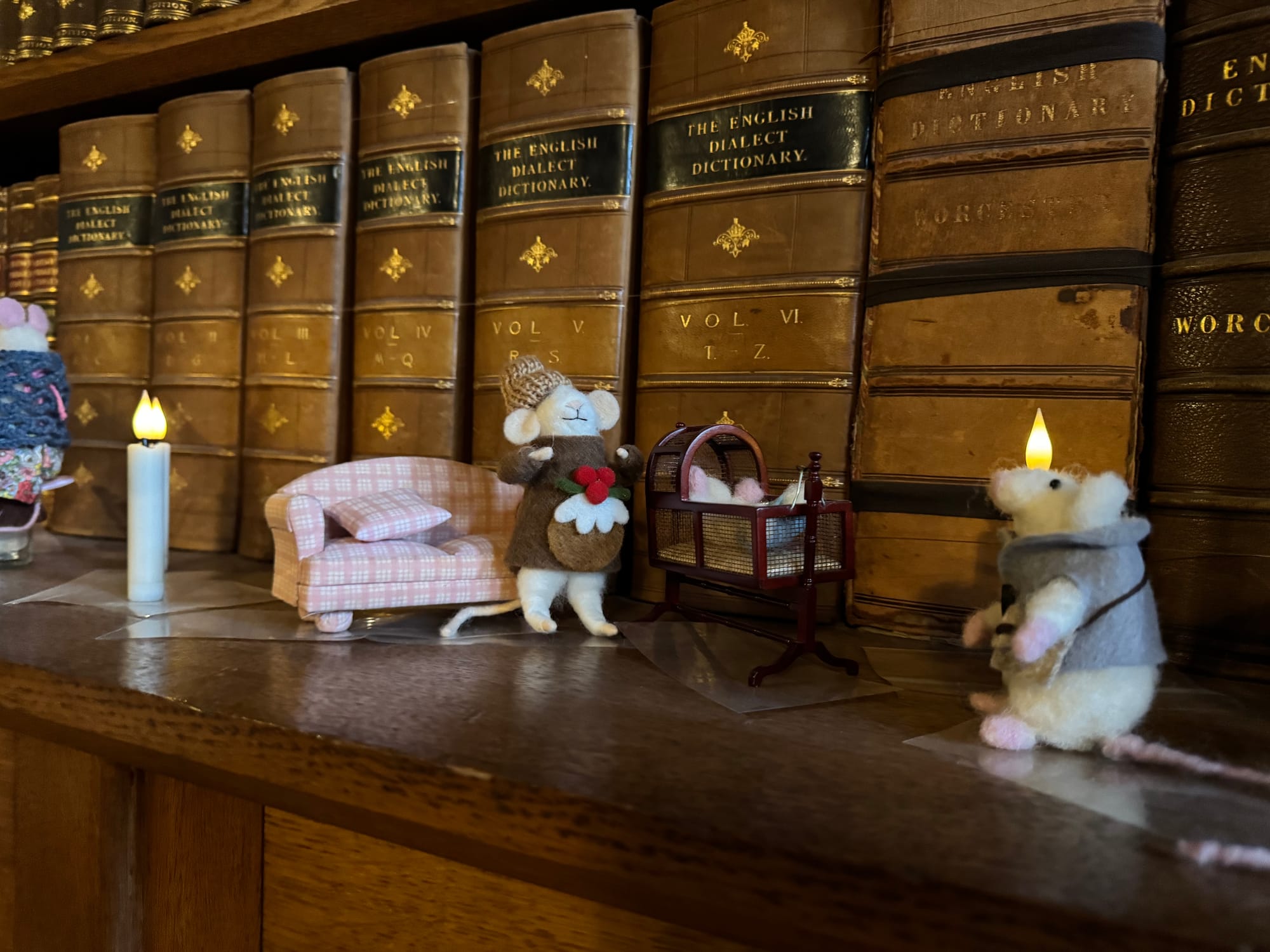 You can forget about naughty elves on shelves in the Organ Room. Here the elves toil away making shoes while mice watch on.
