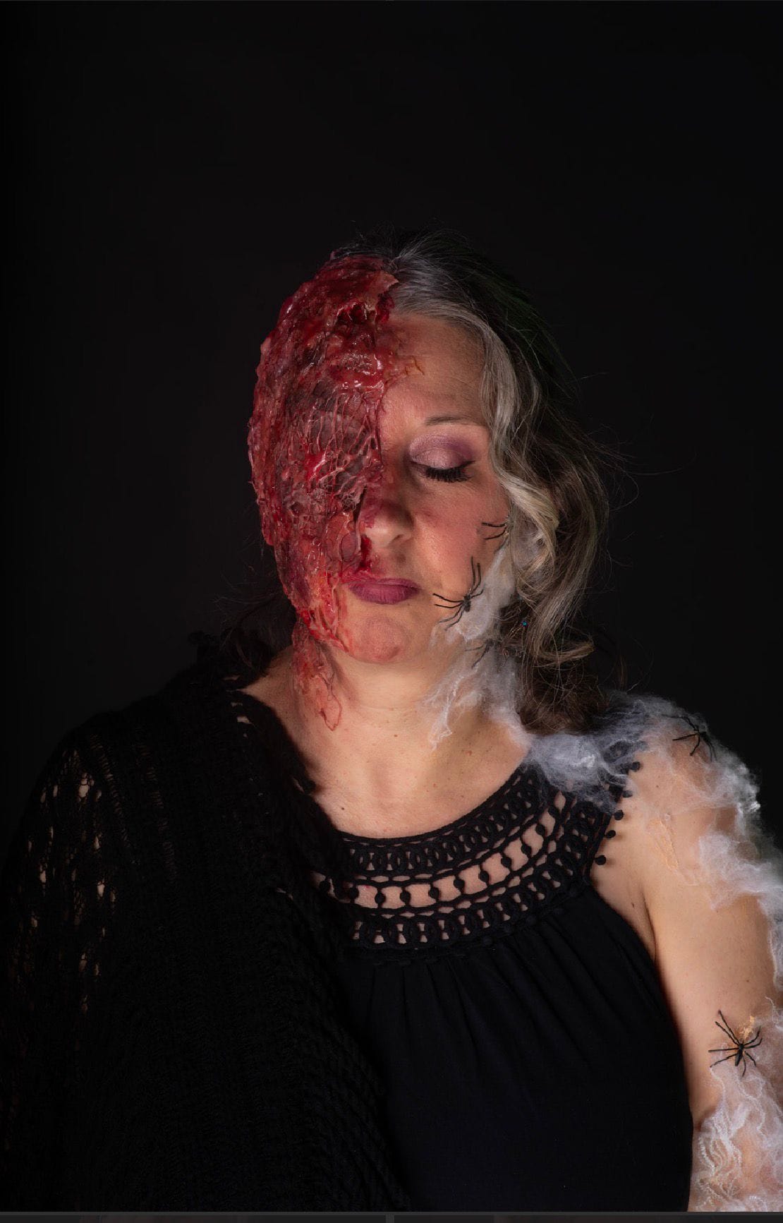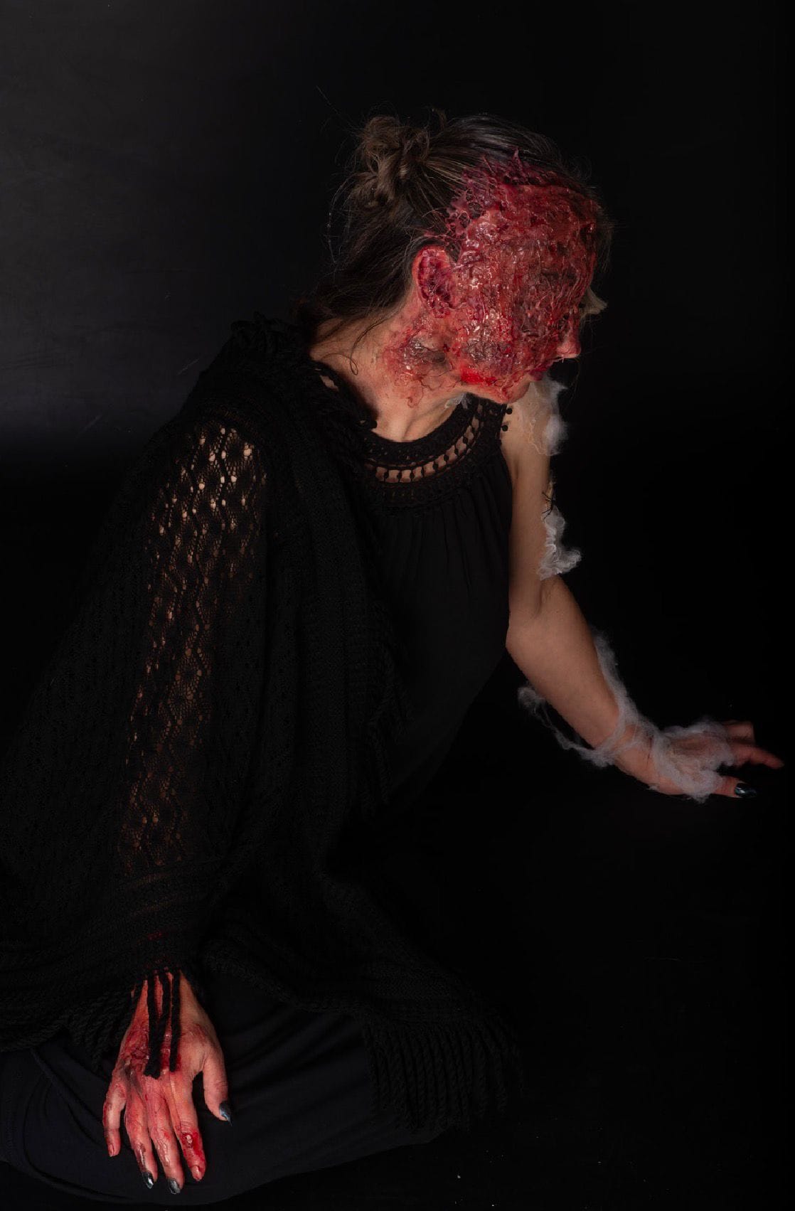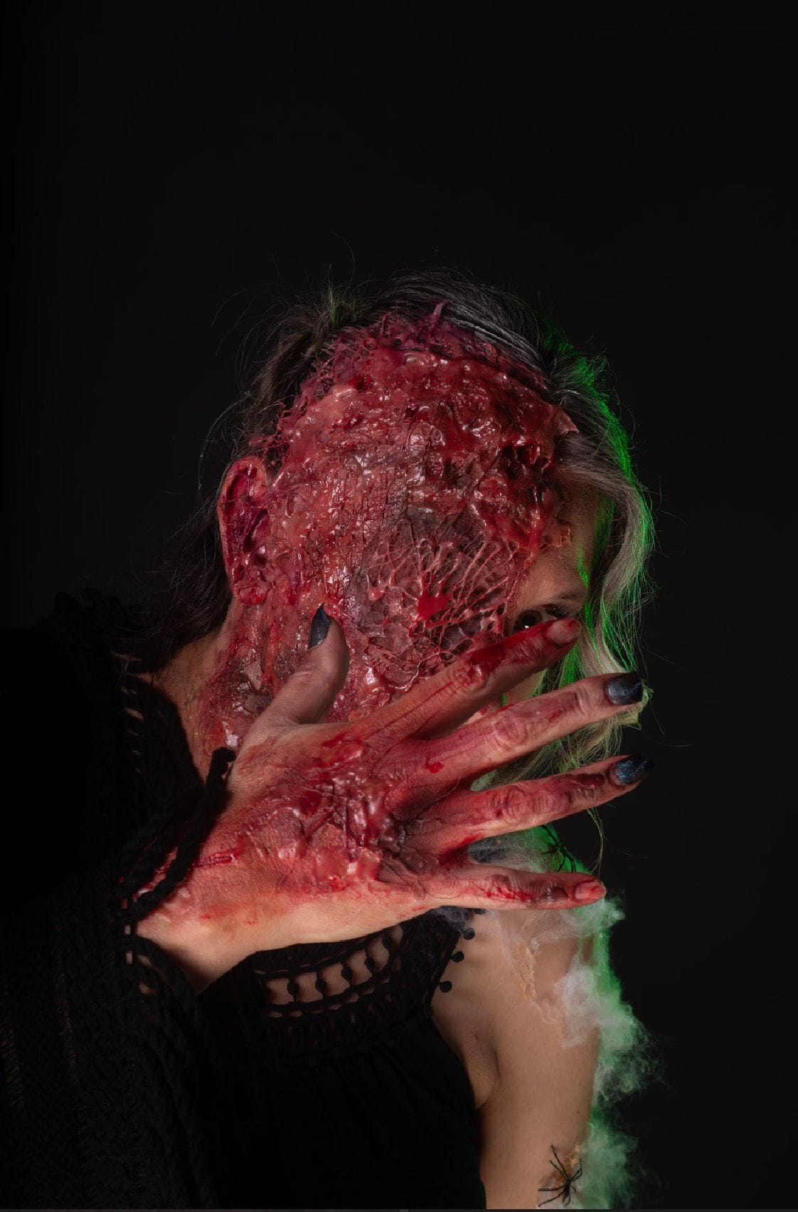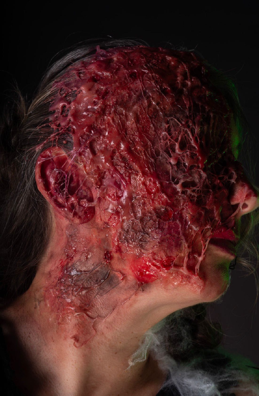 My youngest, Connie, is currently at college studying theatrical make-up and, for her latest project, had to devise a witchy look for Halloween. Ever the horror fan, she went for a burned witch.