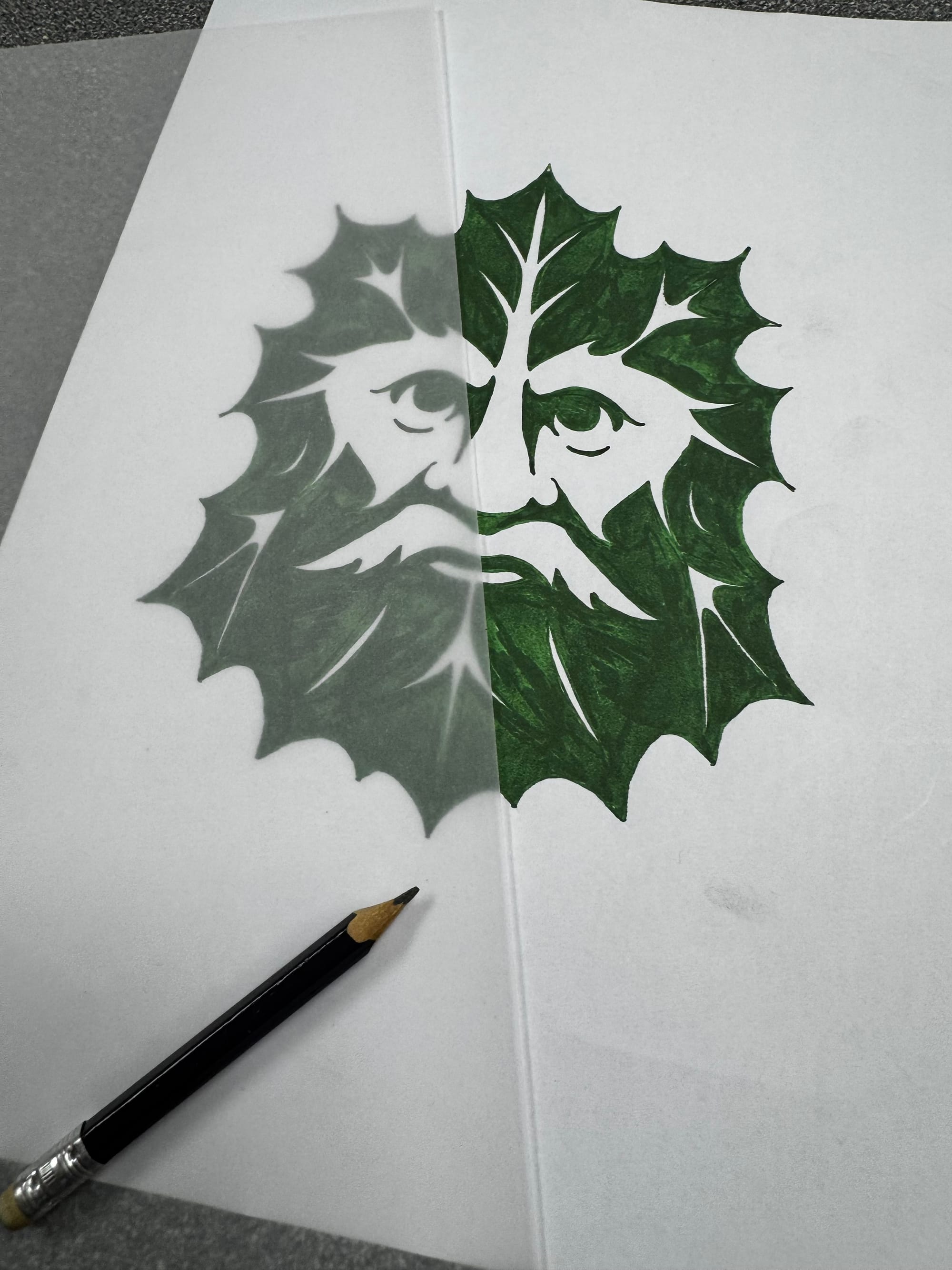 I’m really pleased with how he turned out — one of my favourite prints of the year. Somewhere along the way, I started to wonder if this fella might not want to remain a one-off — that maybe, just maybe, the Holly King could be turned into a card.
