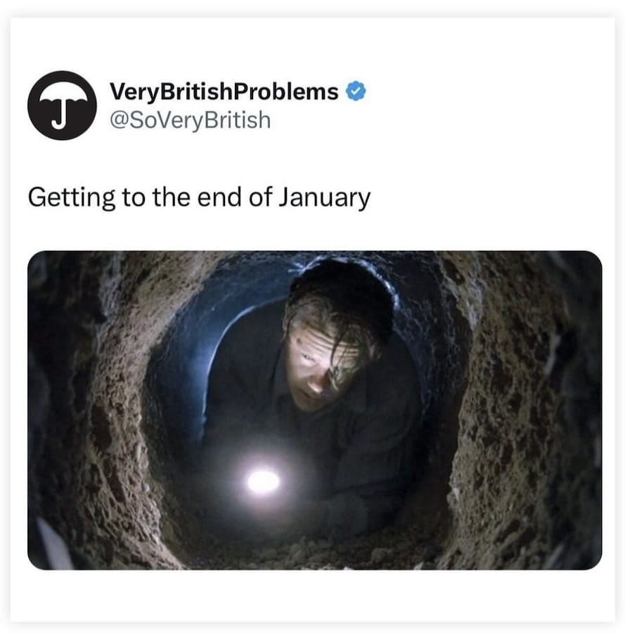 Man alive, did Jan feel loooooooooong! My attitude to the month was best summed up by this meme by Very British Problems: